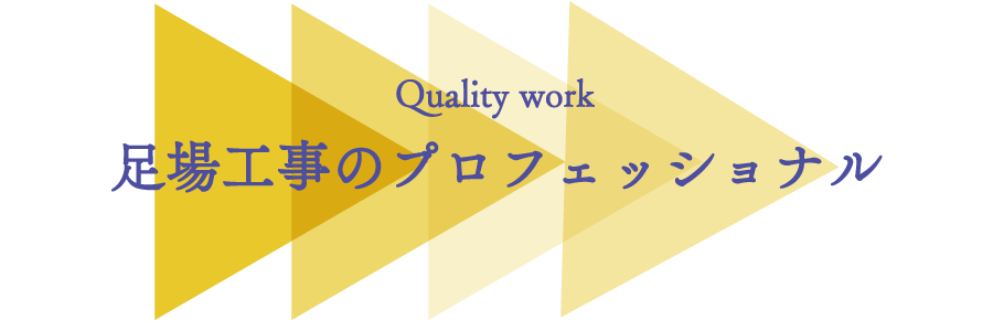 低層~中高層建築足場、特殊足場など様々な仮設足場施工に対応しており、現場では安全管理を徹底し、確実な施工を通して地域のさらなる発展に貢献いたします。これからも常に信頼される企業として、一つ一つのご依頼を大切に、スタッフ一同責任施工で邁進して参ります。